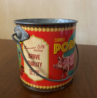 レトロな缶詰パッケージのハンドルが付いた缶。